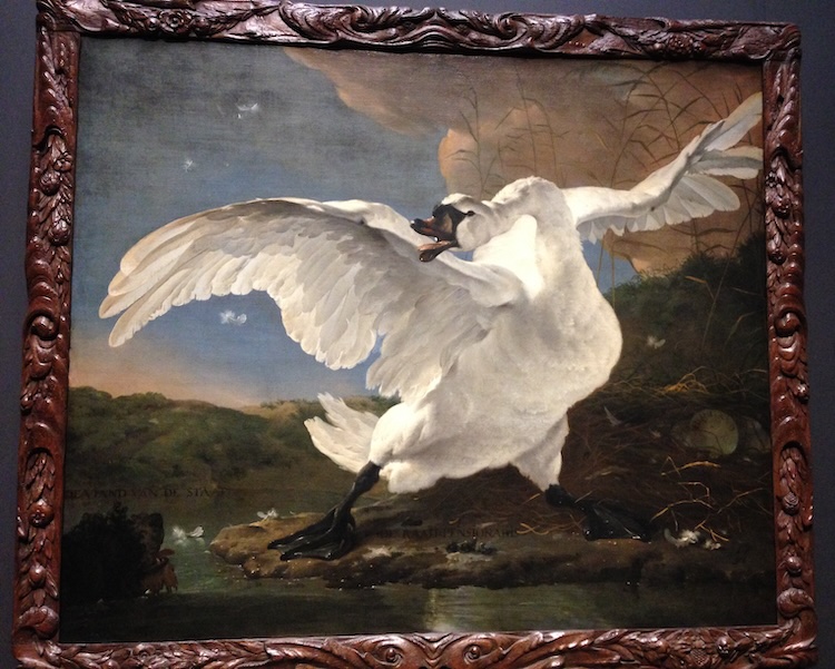 • Het schilderij op de foto (2018 in Rijksmuseum) is De bedreigde zwaan van Jan Asselijn, circa 1650 – allegorie op Johan de Witt: de zwaan is te duiden als het ware goede, de hond als de bedreiging