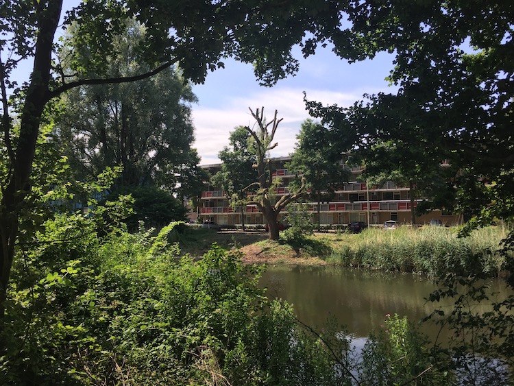 begerend aan de oever,